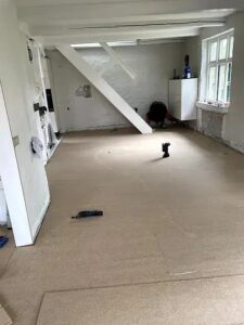 Åbning i bærende væg, og ny gulvkonstruktion med gulvvarme