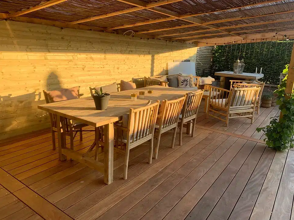 4. Pergola overdækning: Hvis du allerede har en pergola, kan vi hjælpe dig med at lave en overdækning til. Det kan være i form af en markise, for at få ekstra beskyttelse fra vind og direkte sol. Overdækningen kan være lavet af bambus eller trælameller, og vi kan snildt montere den for dig.
