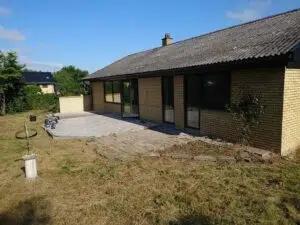 Vi stræber os efter at give vores kunder det som de ønsker at opnå. Derfor stiller vi en bred vifte af arbejdsopgaver til rådighed. Her har vi lavet en brunimprægneret terrasse på 65m2. Denne terrasse giver mulighed for at bruge haven mere, samt danner et lækkert udsyn til omgivelserne. Terrasser giver ud over et dejligt syn til boligen også en bedre salgspris. Det bliver nemlig anset som en investering.